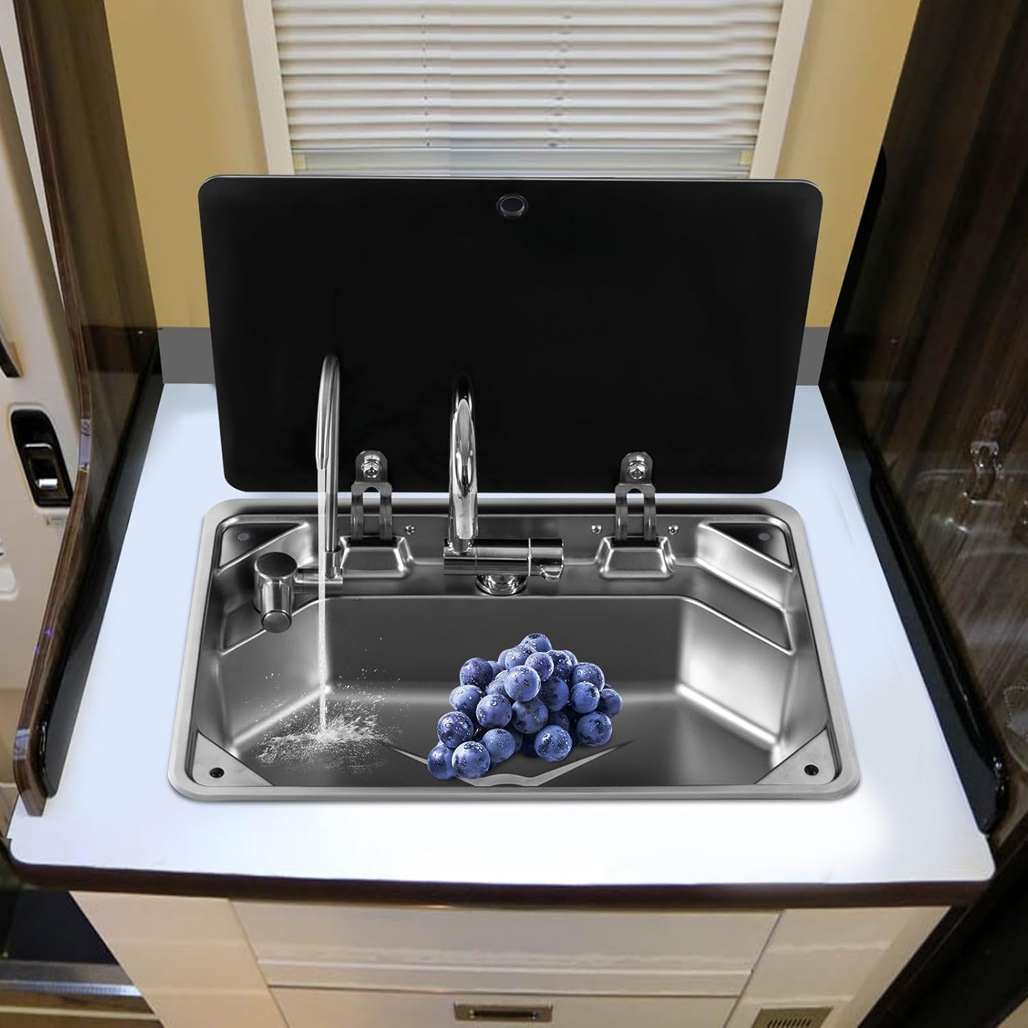 | Included Components | 1* Drainer, 1* English Installation Instruction, 1* Hot & Cold Water Faucet, 1* RV Sink, 1* Water Filter Faucet, 2* Drain Pipes |