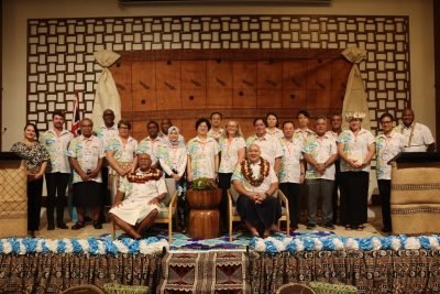 In group photo seating in front left is Fiji Prime Minister Sitiveni Rabuka, WHO Western Pacific Regional Director General Dr. Saia Maú Piukala (right) together with all WPRO Member States and this includes MHMS Minister Dr. Paul Popora Bosawai at the official welcome dinner of the 67th RCM.