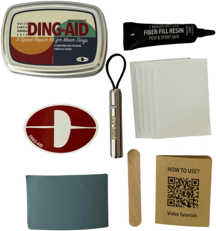 The complete DING-AID solution for quick surfboard repairs. This bundle includes the original DING-AID Surfboard Repair Kit plus extra clear repair stickers, so you’re always prepared for multiple dings. Perfect for travel, surf trips, and keeping spares on hand.