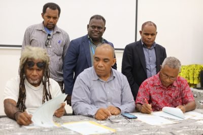 The MA was signed by Dr. Franco Rodie, Permanent Secretary of the Ministry of Education and Human Resources Development (MEHRD), Chair of the SIG Negotiation Team, Dr. Melchior Mataki, and Mr Robert Lafisi, General Secretary of SINTA.